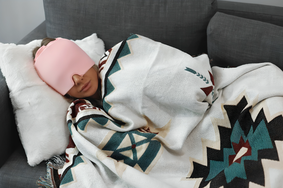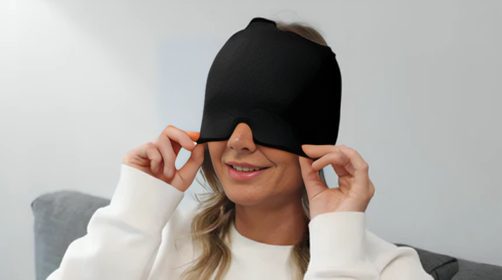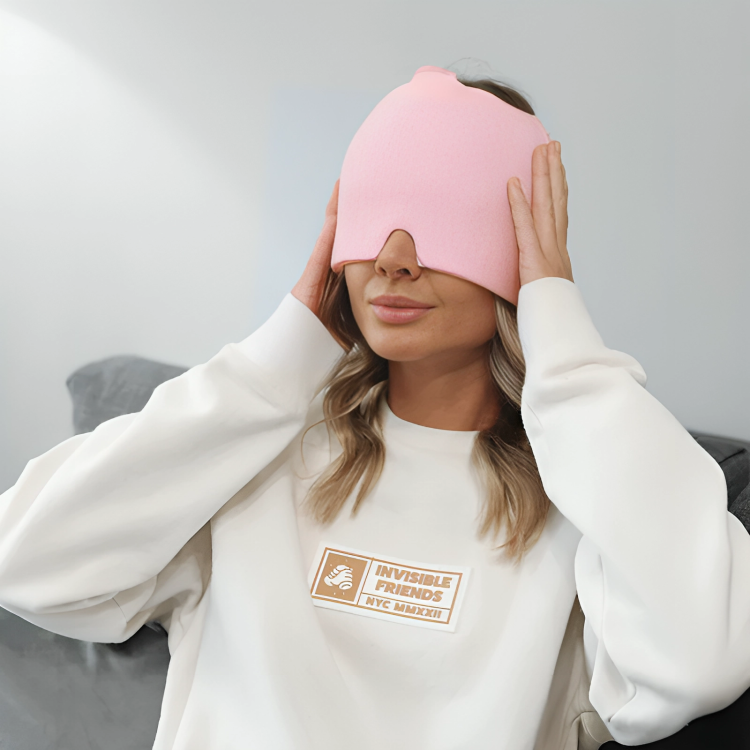 Scandinavian Migrænehat leverer øjeblikkelig køling og komfort, der tilpasser sig din hovedform for optimal lindring.